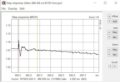 The step response takes 4.3 milliseconds to settle. This is the longest settle time for any high frequency horn that I've measured.