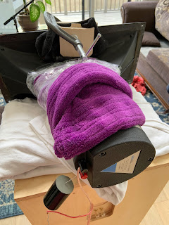 The Altec 811B rings like a bell if it's not securely mounted to a bass enclosure. To mitigate the vibration I had to securely wrap the horn in a blanket using pre-stretched stretch wrap. The horn continued ring during my knuckle wrap test at the horn mouth (Lip) so I added additional damping by clamping a sock sandwiched between wood blocks, which was C-clamped in place. Finally the horn was dead sounding to the knuckle wrap test. I measured the horn at 1.5 meter mic distance using my rotary table, careful to keep the mouth of the horn along the pivot axis.