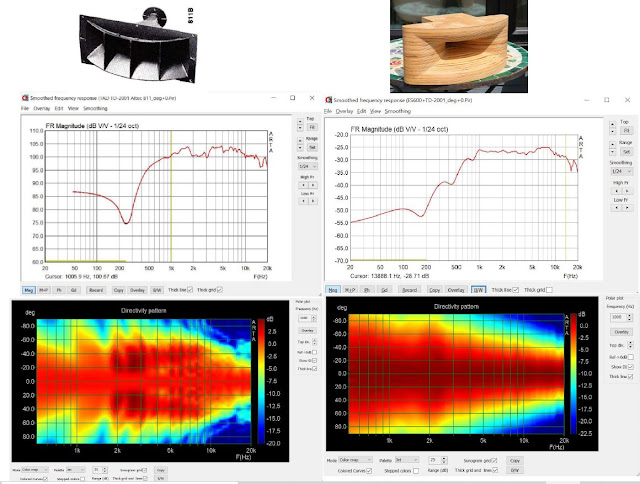 This blog features a full set of measurement on the Altec 811B biradial horn. My plan was to test this horn with a pair of Altec 806-8A compression drivers however the measurements were so poor that I didn't think the off-axis polars would give the horn a fair chance at performing it's best. So instead I used the TAD TD-2001 so that no argument could be made that there was something wrong with the driver.