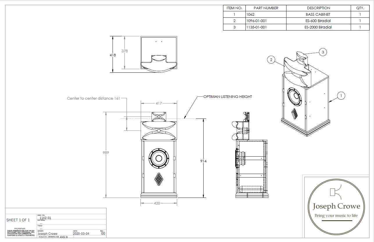 Dimensional Drawing for ES-2000 Biradial Wood Horn (Part No. 1135) |