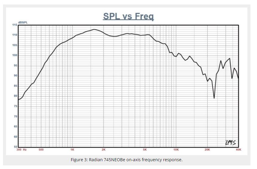 Measured frequency response AudioXpress Test Bench for Radian 745Neo on B&C ME90 horn. |