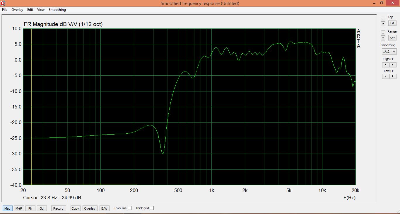 Listening ImpressionsI am very happy with the sound of the horn. When I'm listening I often ask myself if this would impress somebody that's new to audio. When I hear this horn I think it would impress pretty much anybody. There's massive scale to the sound combined with very coherent sound stage depth. This is a very special sounding horn. There is no lack of upper treble detail and the horn sounds balanced even when you move about the room. I'm very happy with the integration of the Fostex FW208HS woofer. They have very close rhythmic timing even on complex harmonics such as acoustic guitar. I could go on further about the overall sound quality but my hope is that the measurements speak for themselves.