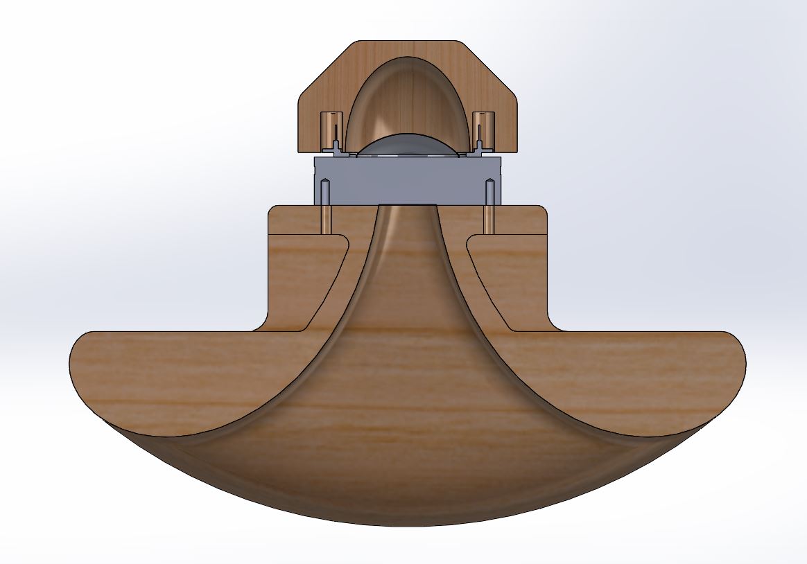 DesignTo start the ES-600 uses my ES flare geometry which includes a full 270 degree wrap around horn mouth which is a first for any biradial that I know of. This reduces edge diffraction off the horn mouth and minimizes acoustical resonance to very low levels.