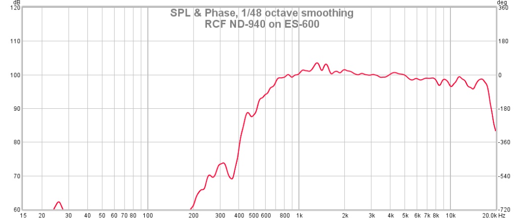 RCF ND-940 on ES-600 Frequency Response with 3ms Gate |