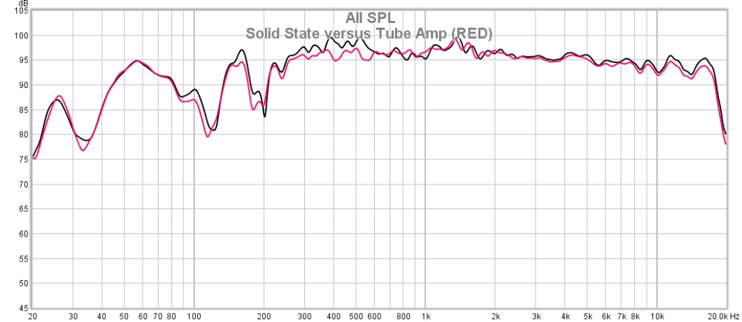 I experimented with a variety of tube and solidstate amplifiers. The above results were with a class A solid state amplfier. Testing with a 300B monoblock amplifier showed a slightly rolled of treble by about 1.5dB. Adding in a tube preamp introduced another 1.5dB roll off in the treble starting at 2Khz.