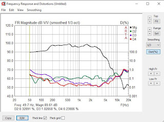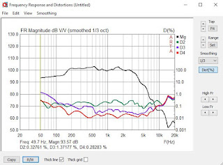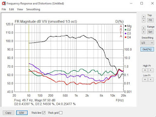 Even at 95dB bass distortion remains around 0.50% at 70Hz, an excellent result for a 6.5" woofer.