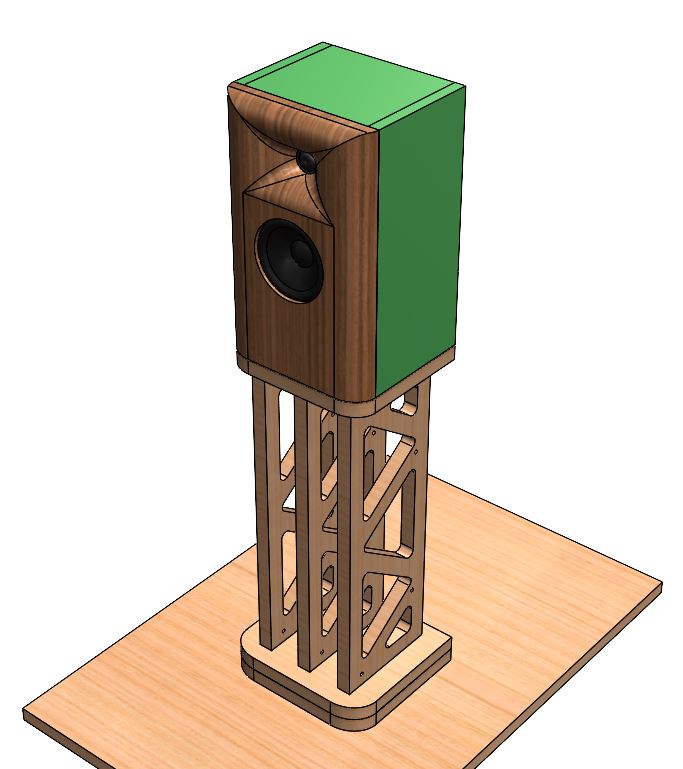 To compliment the overall aesthetic I developed a speaker stand. This stand is CNC cut from 24mm thick baltic birch plywood. The base of the speaker stand is 48mm thick.