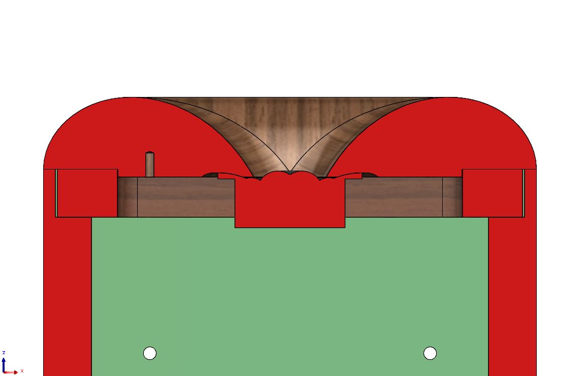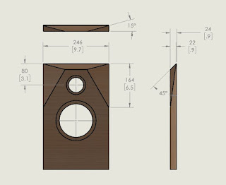 In order to showcase the benefits of 1159's horn I decided to make a regular speaker baffle using the same overall geometry and drivers except in a non-horn configuration.