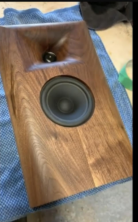 1159 Solid walnut baffle with drivers mounted |