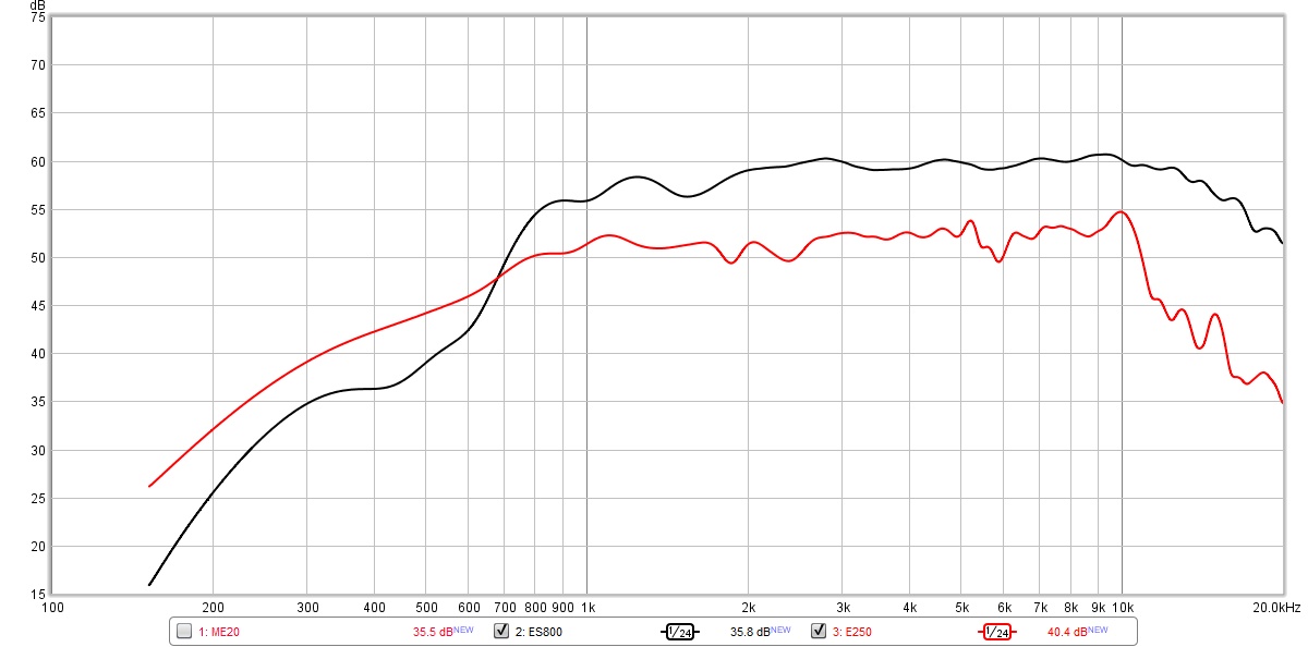 | Frequency ResponseE-250 Dual Neo8S Horn (Red) + TAD TD-2001 (Black) (5ms gate) |