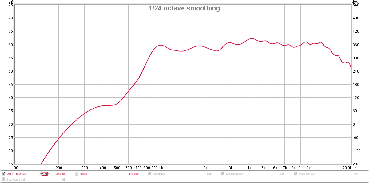 | TAD TD-2001 on B&C ME20 Frequency Response, REW, 5ms Gate, 24 dB smoothing |