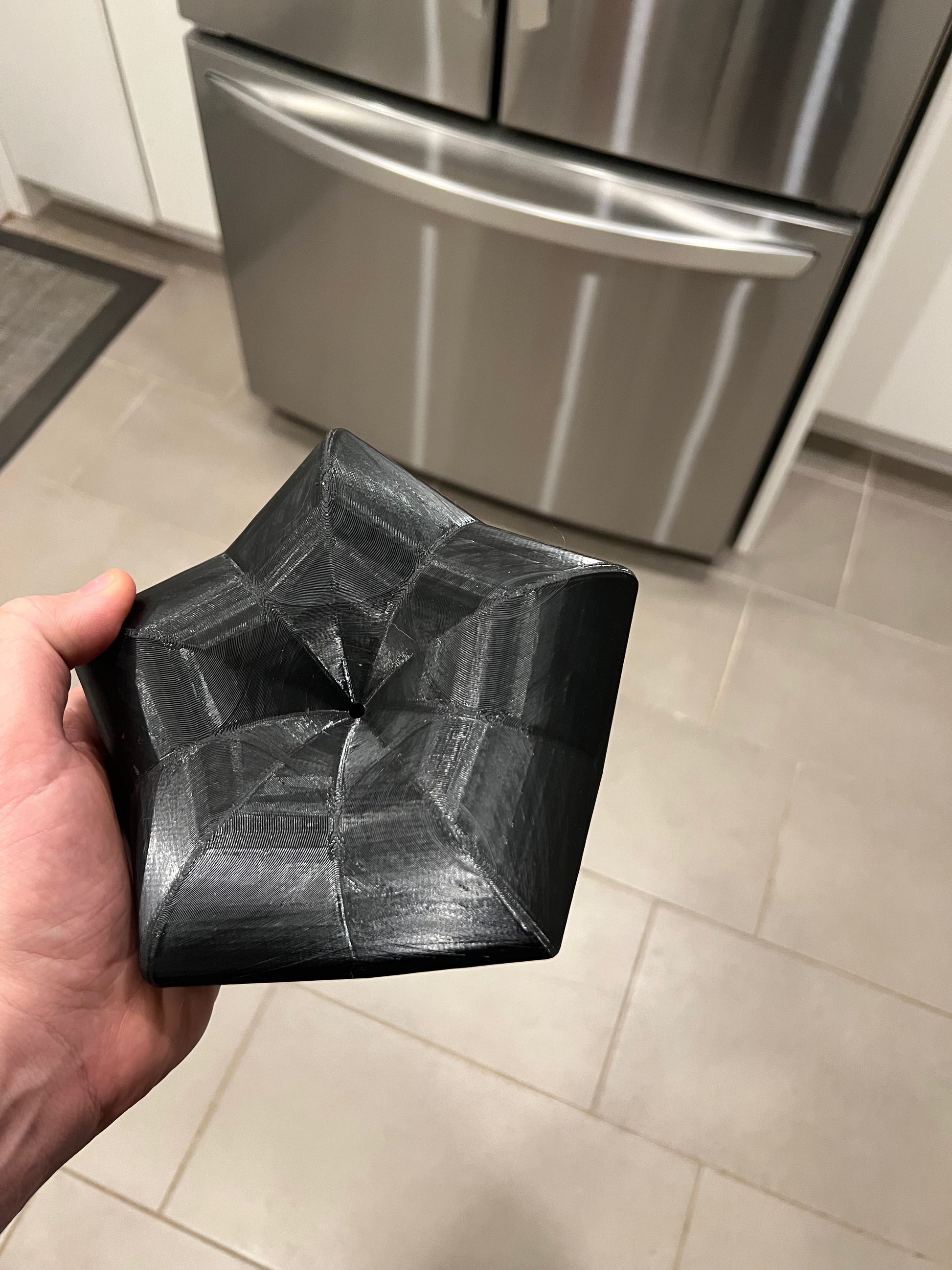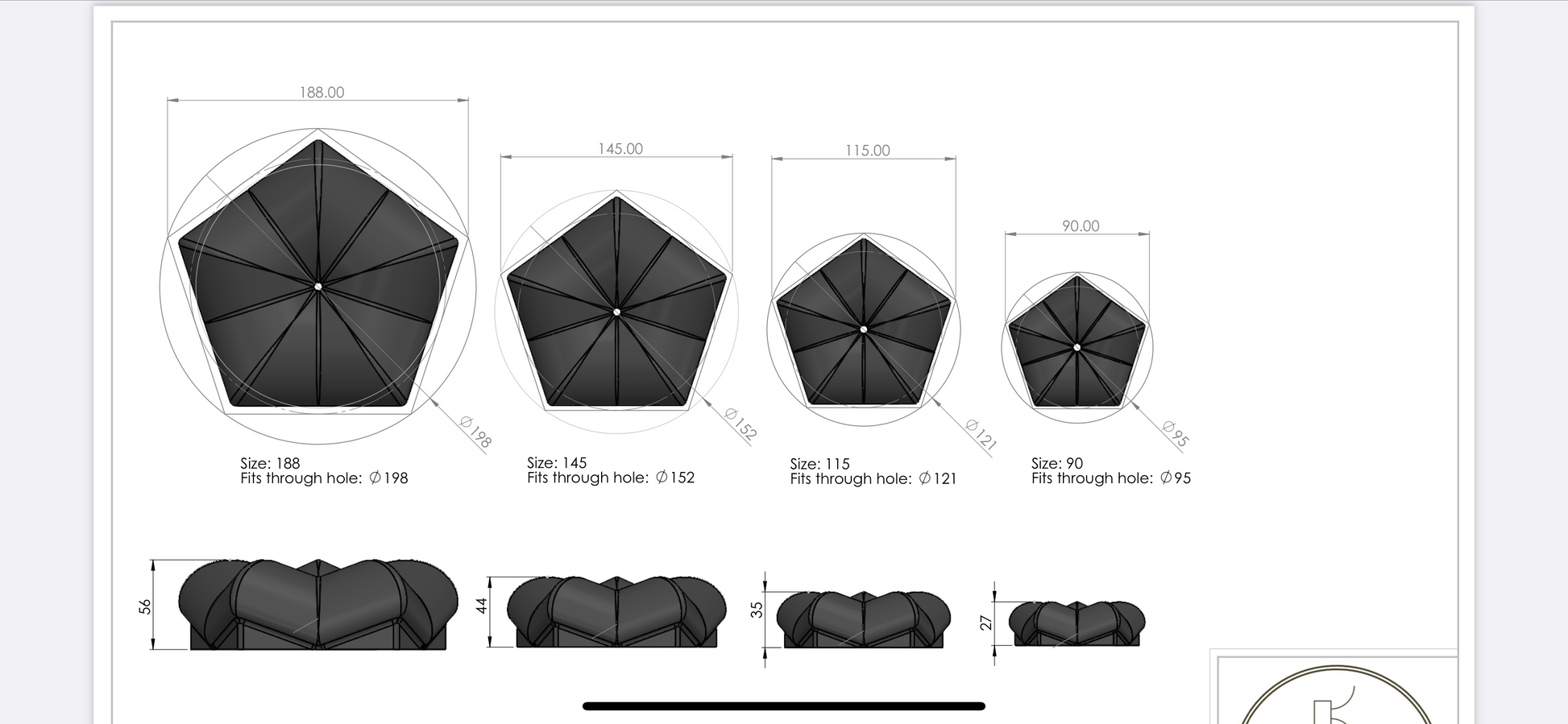 The design is offered in four physical sizes depending on your application. The pentagon shape uses the ES curvature to ensure optimal randomness to the diffusion angle. The shape has been optimized for 3D printing with the diffusor laying flat down on the 3D printer bed. A 5mm diameter hole facilitates a standard wood screw for mounting the diffusor to the rear wall. This is standard for all size variants.