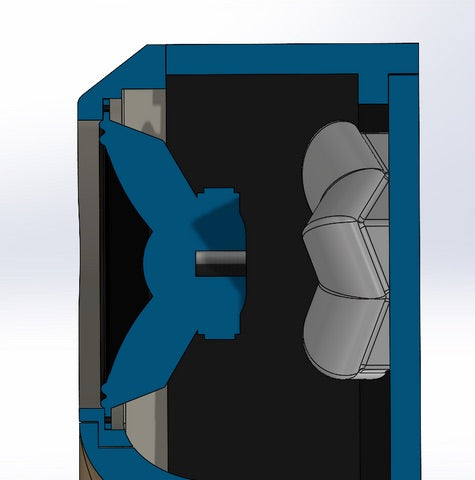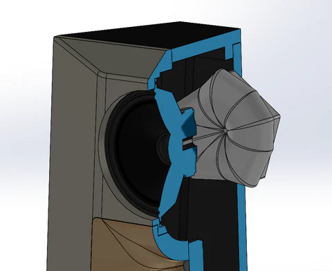 This diffusor is place on the rear wall inside your bass cabinet. The diffusor works by deflecting the rear wave from the driver. The deflector's unique shape has been optimized to scatter the rear wave. This scattering effect diffuses the rear wave's energy which reduces the amount of energy escaping back through the driver's cone.