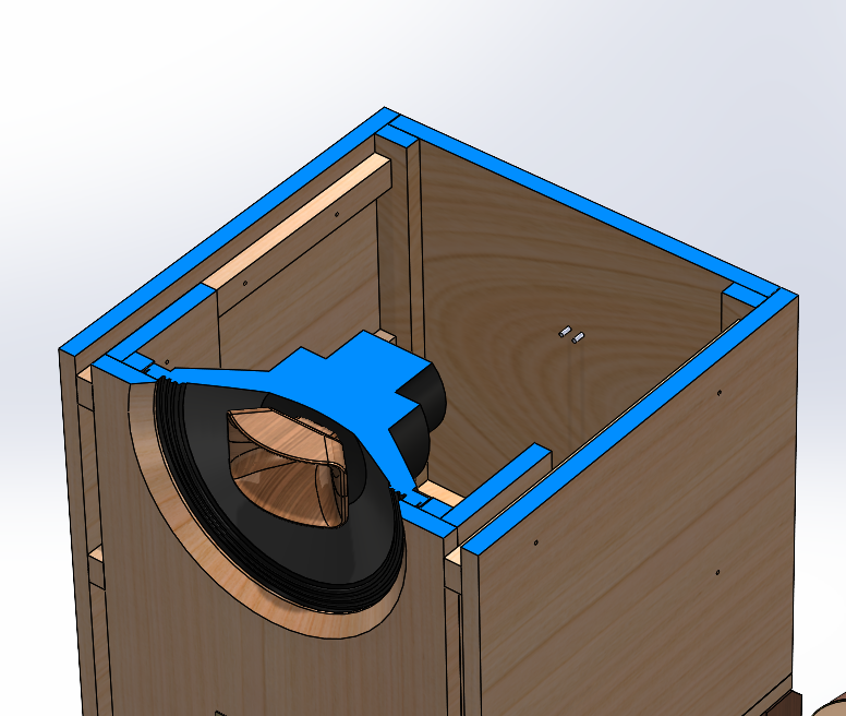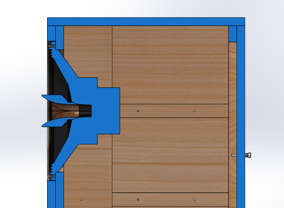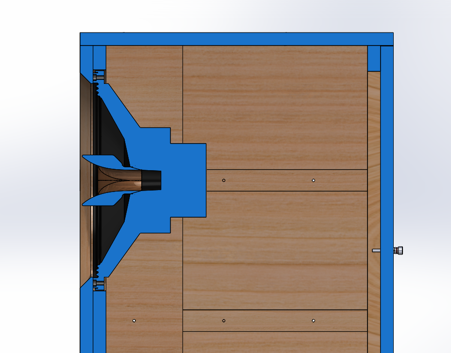 The plans come in two different configurations, front mount or rear mount for the driver. The rear mount options requires that the driver be mounted from inside the cabinet by removing the rear cover. The front mount option allows the driver to be mounted from the outside of the cabinet and the rear cover is permanently glued and not removable. Each configuration has it's own separate drawing package clearly labeled to avoid confusing the two during construction. Rear mounting the driver provides a more clean appearance, otherwise the performance is identical.