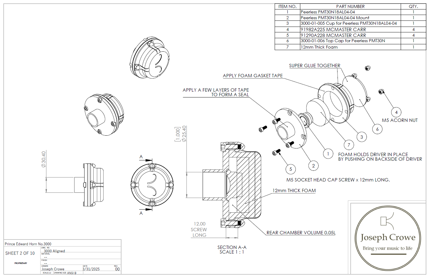 - Please refer to file "3000-01-Driver Adapter for 1 inch compression driver.STL"