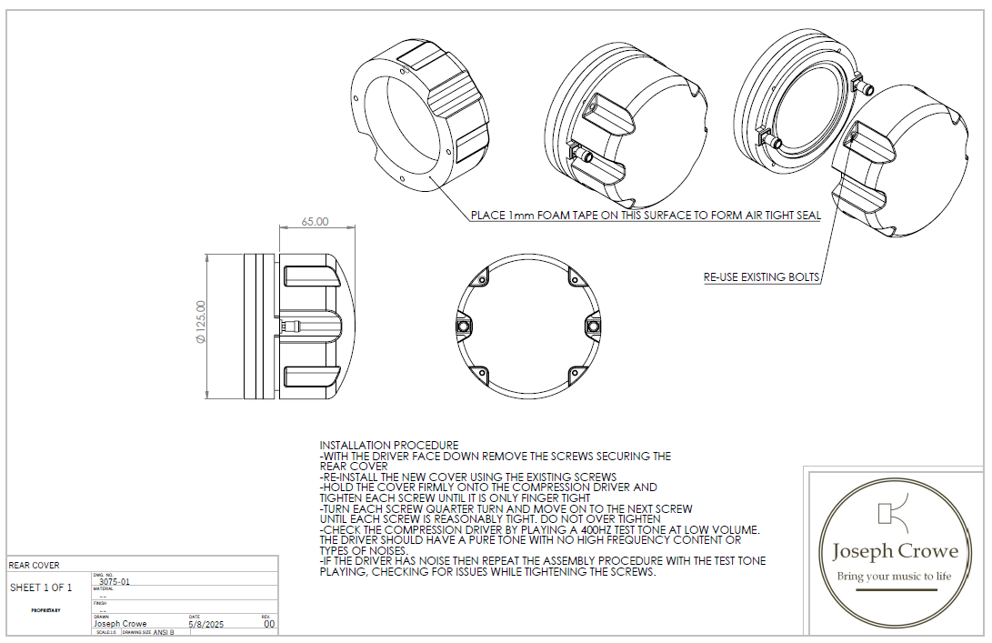 Rear Cover No.3075 is designed to improve the overall sound quality of the SB Audience 75CDN-T compression driver.