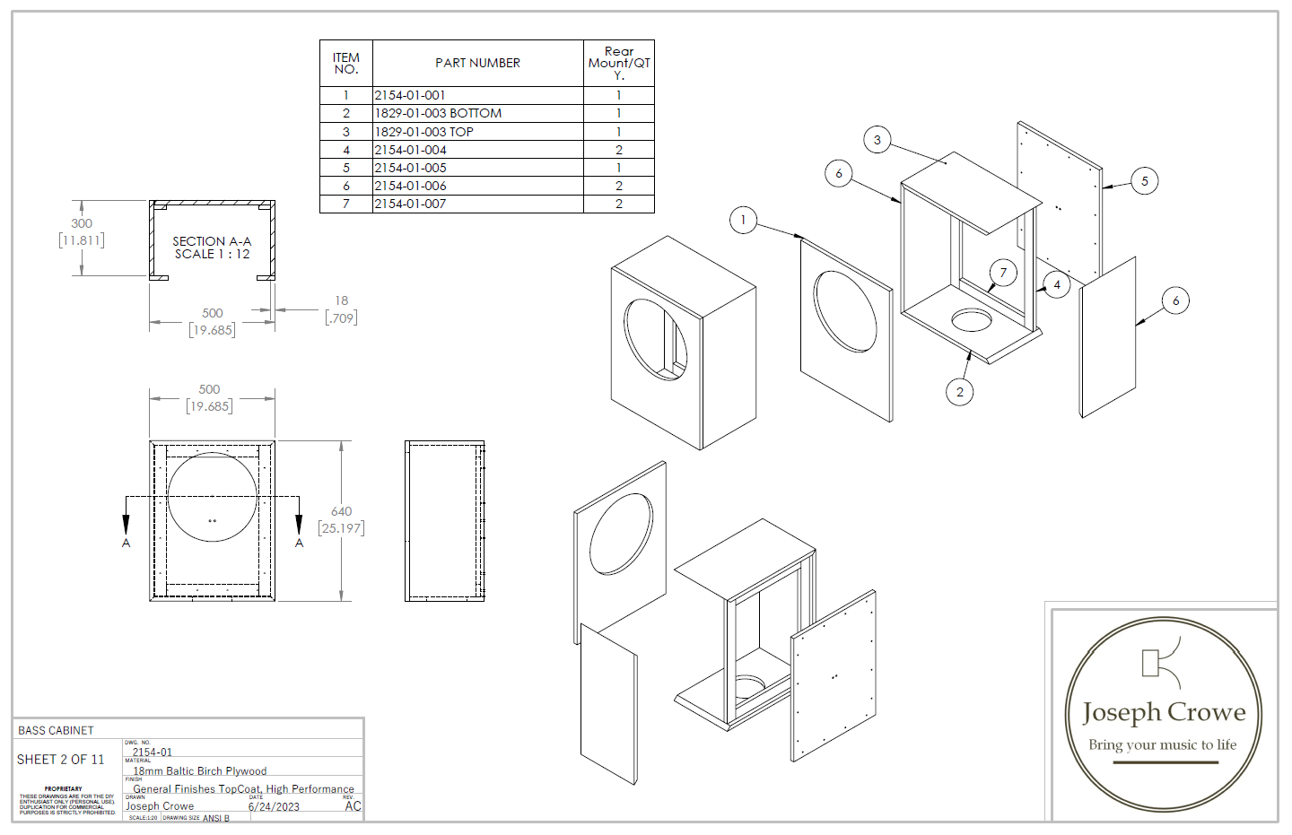 - Assembly and detail drawings for bass cabinet (.PDF format)