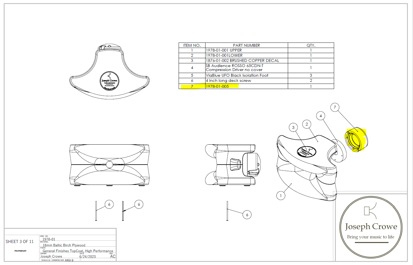 By purchasing these plans you will automatically receive the required drawings and 3D CAD files required to construct the complete speaker.