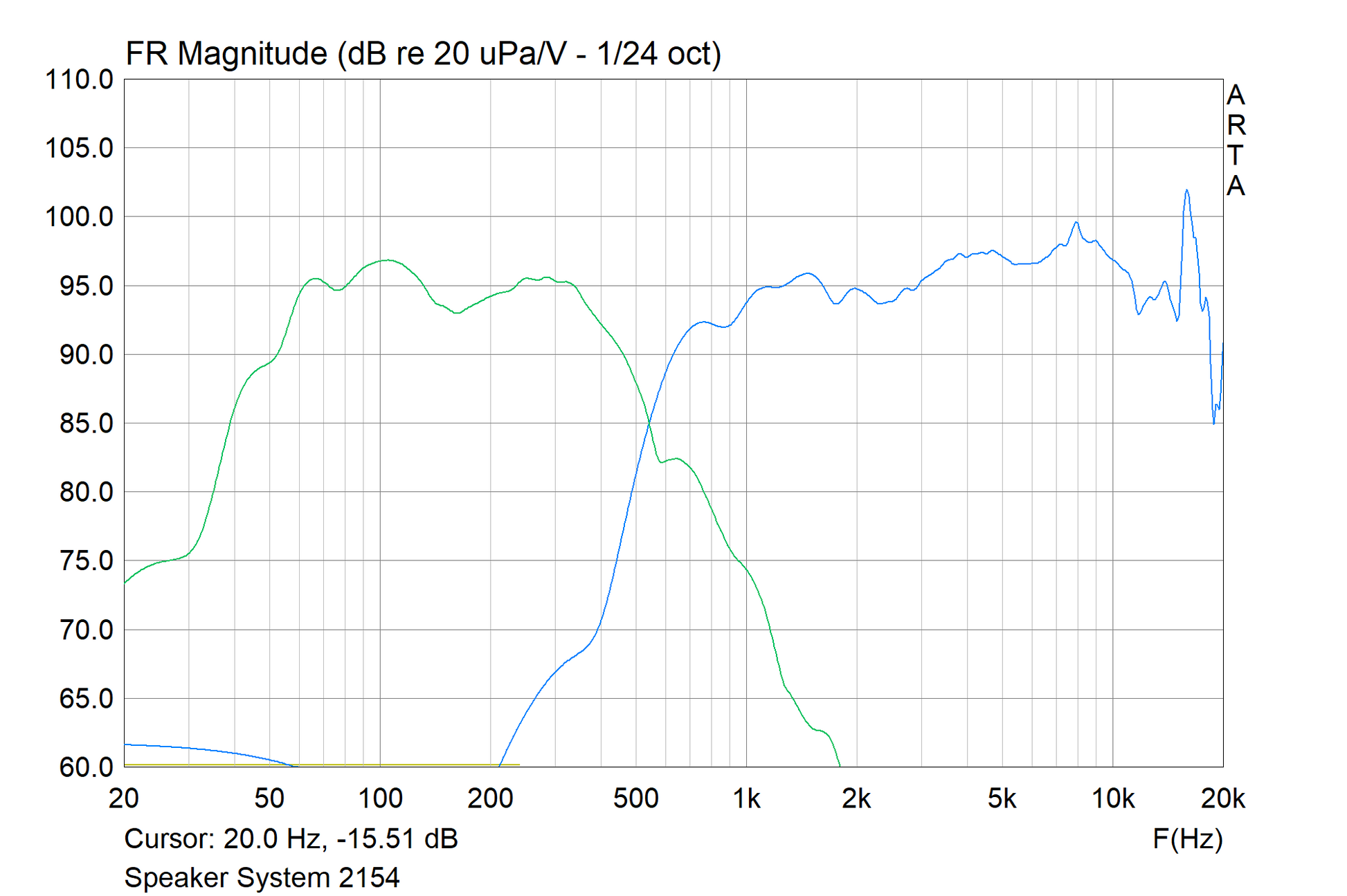 - Produces deep powerful bass (frequency response shown below is the near field woofer response and does not show the port output extending bass response to 33Hz)