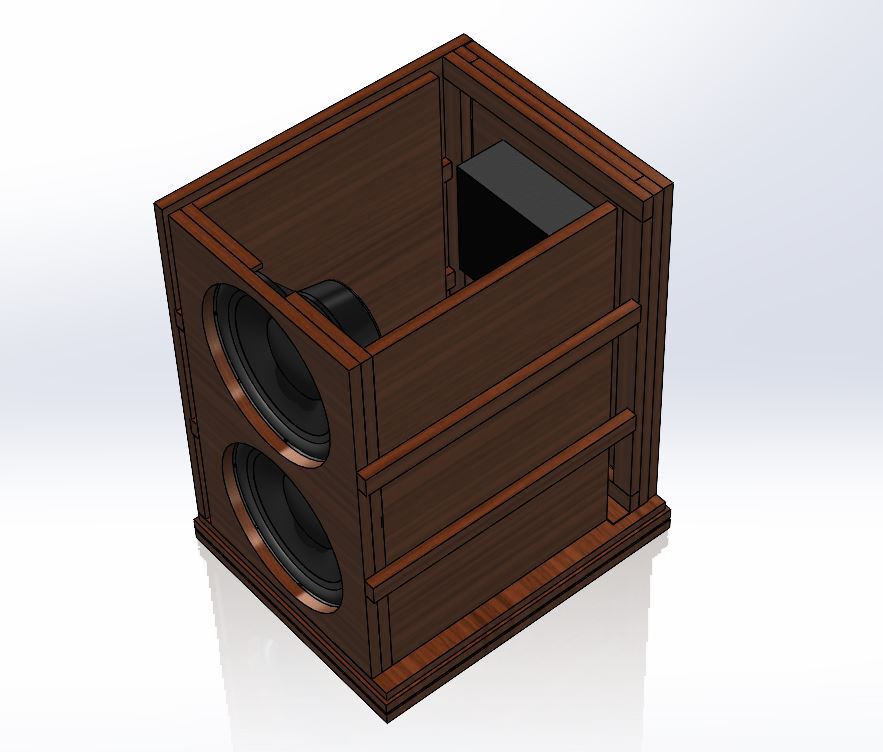 1097 is a no compromise construction to virtually eliminate cabinet vibration. Constructed of 24mm thick baltic birch plywood using double layer in most locations.