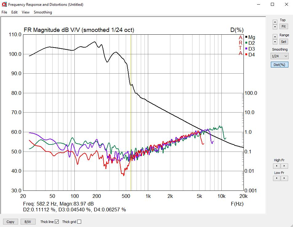 Below is the %THD for one bass cabinet. 1097 achieves only %0.25 THD at 110dB SPL.
